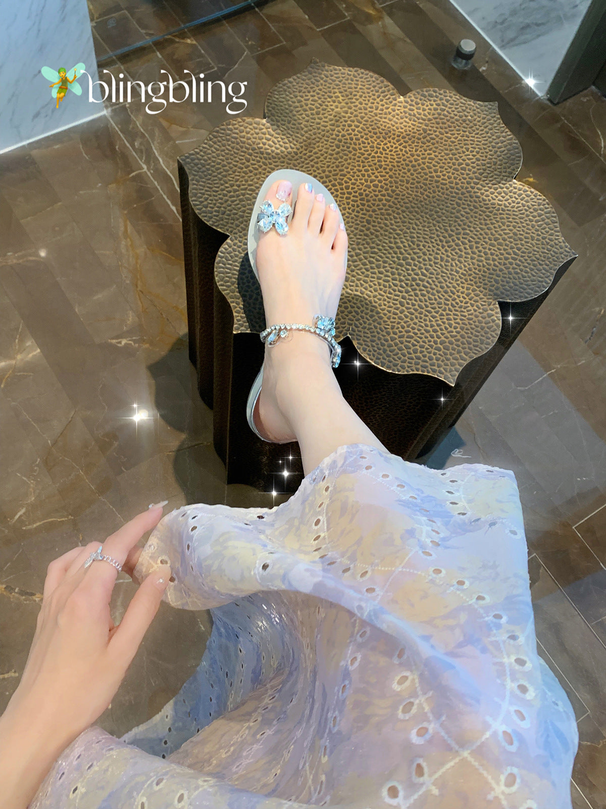 Women's Grape Mom Wonderland Fairy Style Rhinestone Flip-flops Slippers