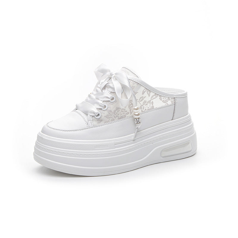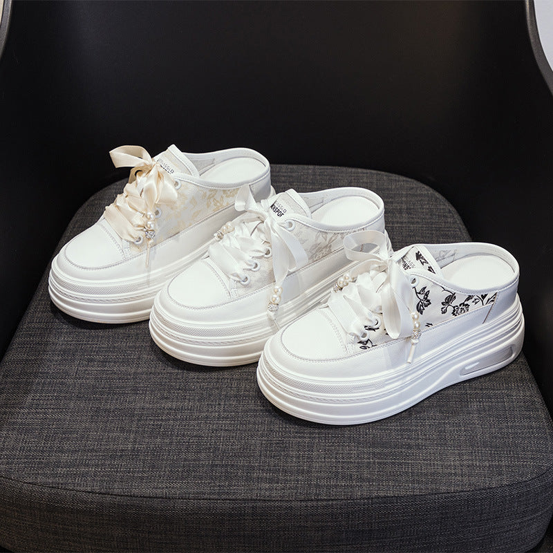 Women's Half Mesh Breathable Height Increasing Insole Slippers