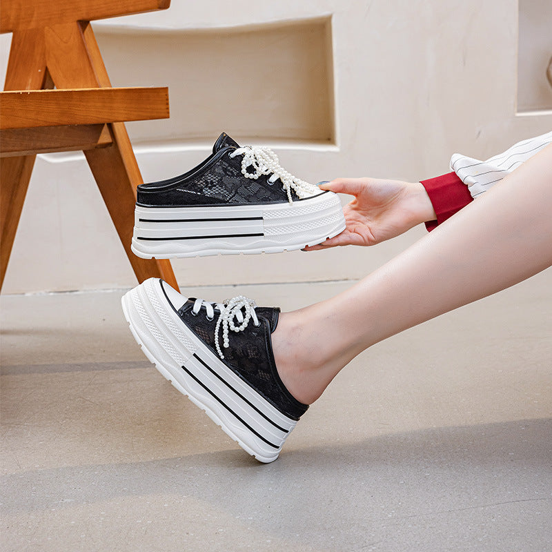 Women's Height Increasing Insole Pearl Half Summer Slippers