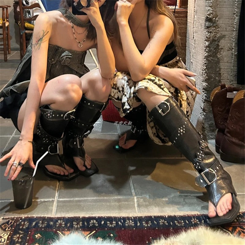 Women's High Hot Genuine Pants Pipe Flip-flops Boots