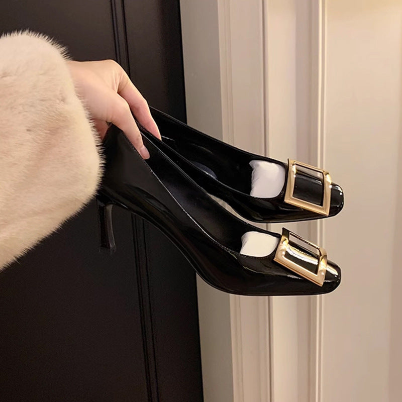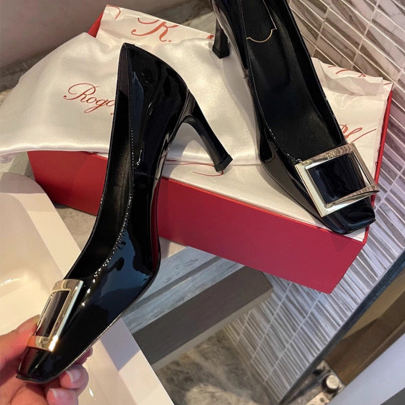 Women's High Metal Patent Pumps Chunky Commuter Women's Shoes