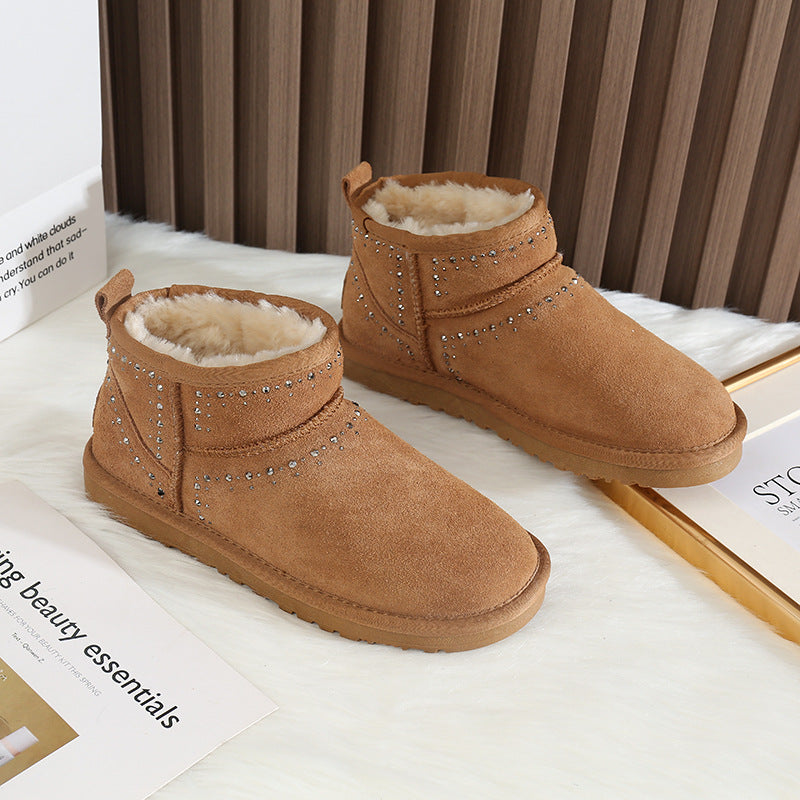 Women's Hot Drilling Round Head Plus Veet Warm Snow Boots