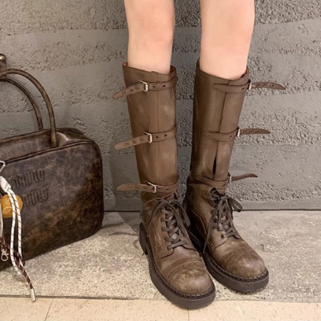 Women's Knight Retro Style Cool Front Washed Boots