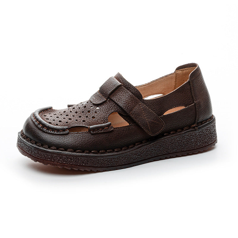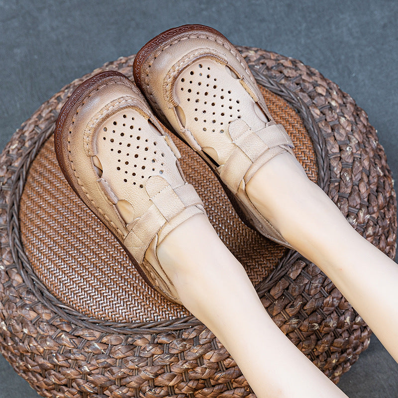 Women's Layer Cowhide Handmade Retro Punching Flat Sandals