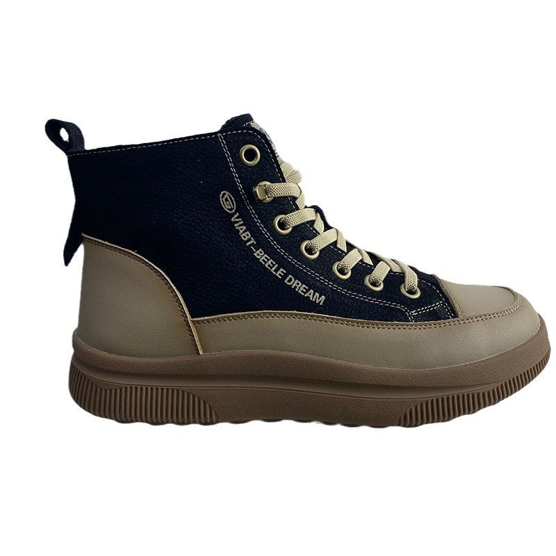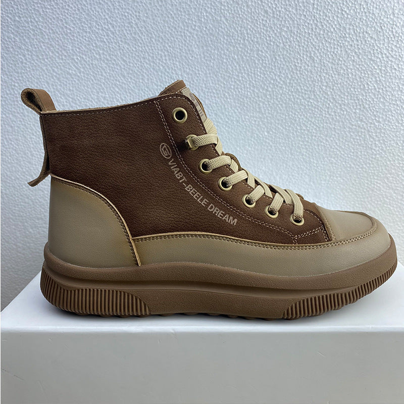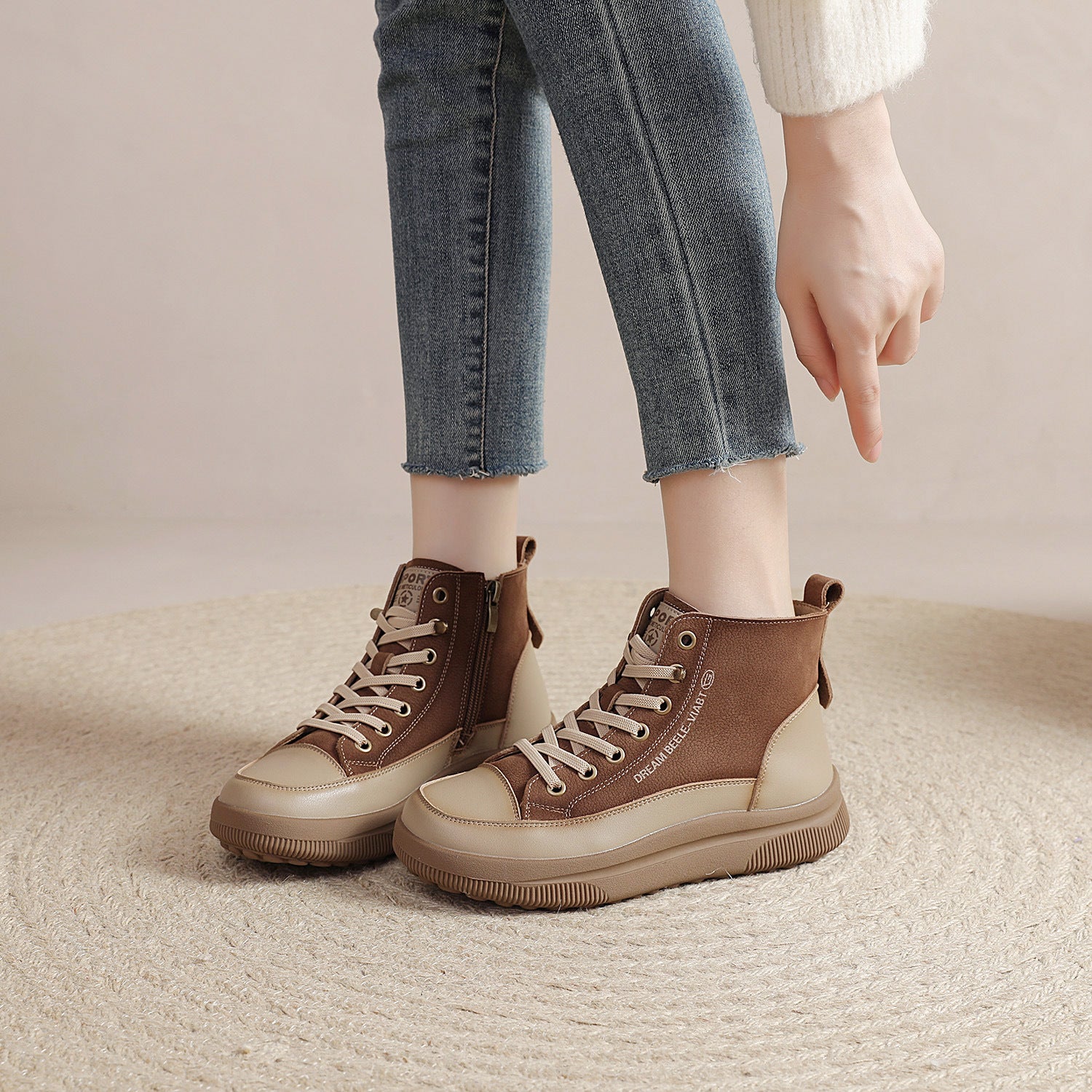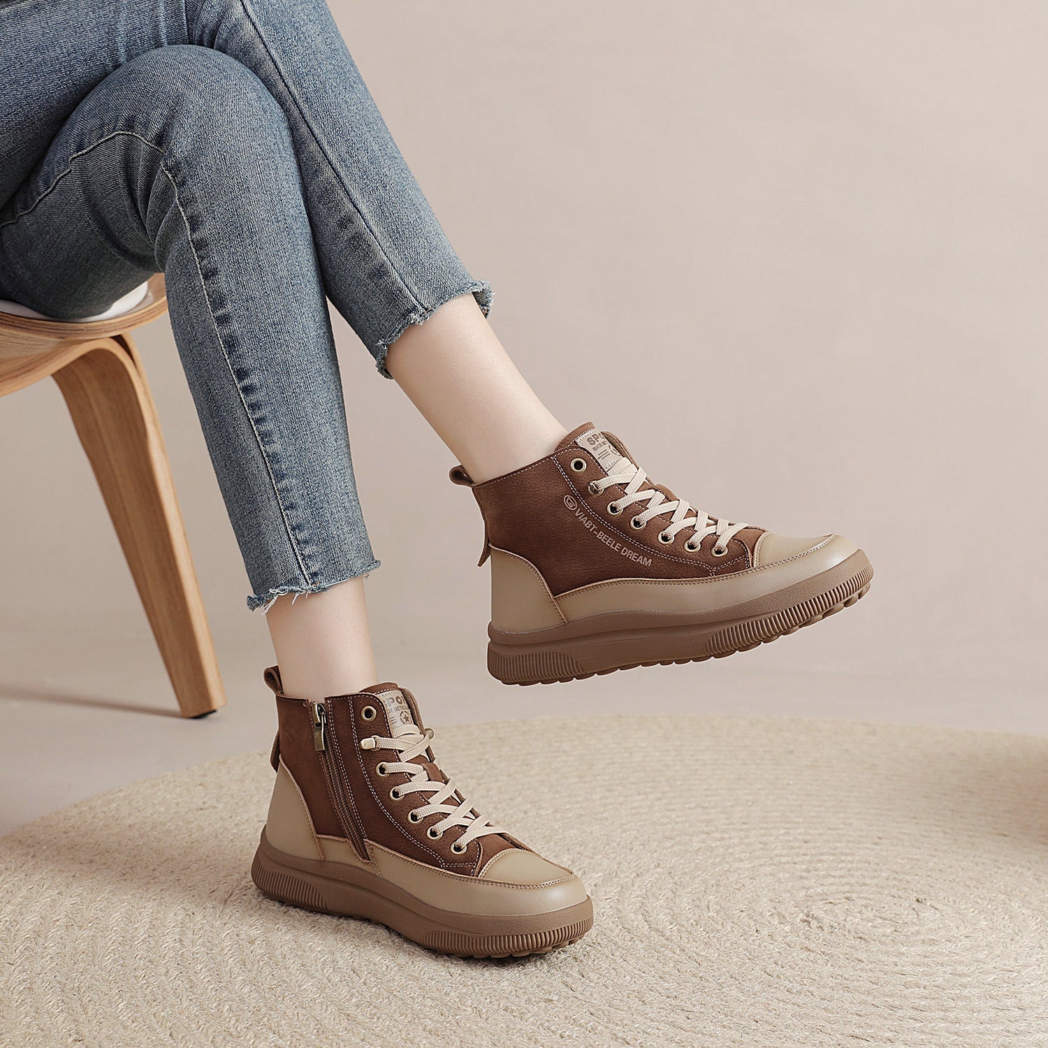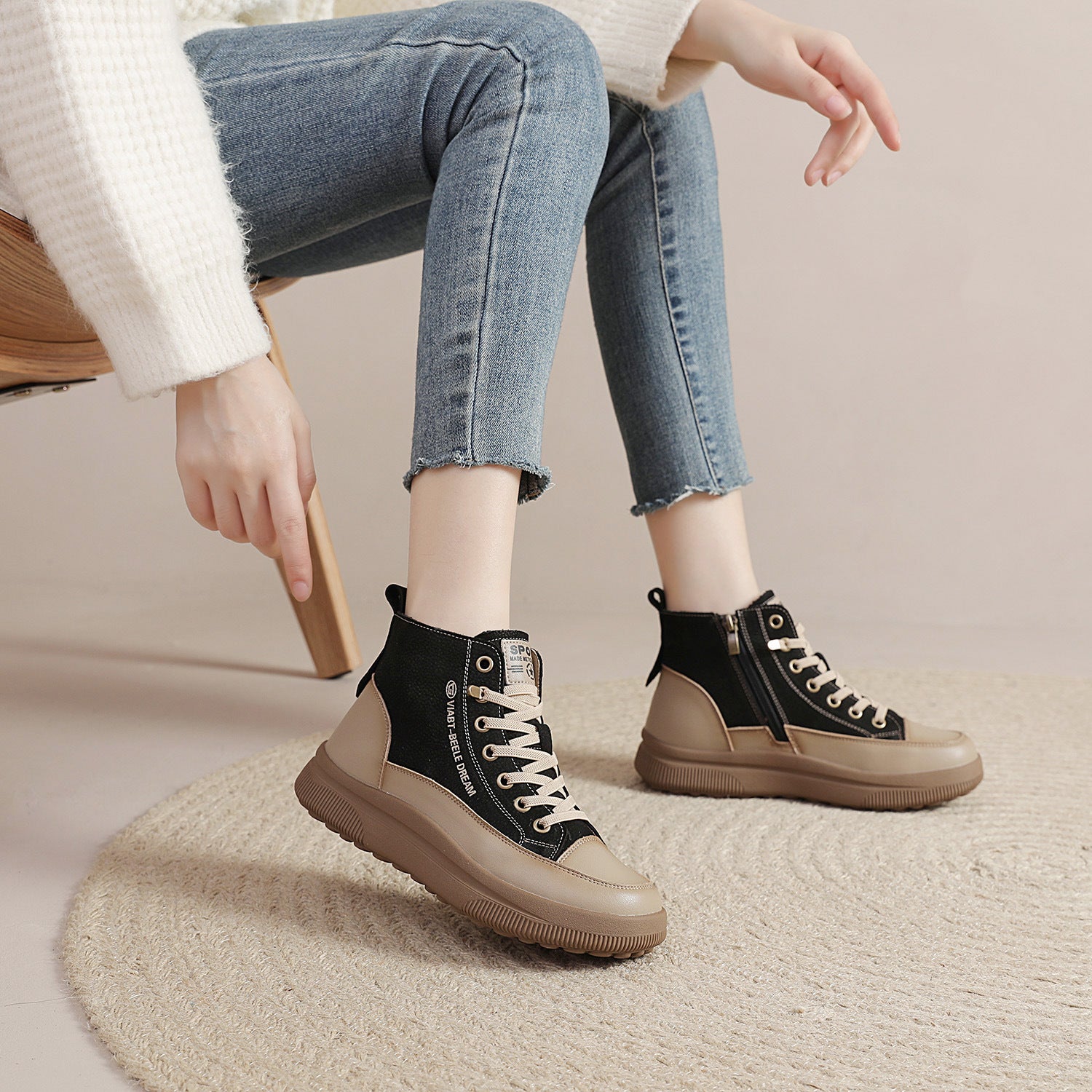 Women's Layer Cowhide Retro High Top White Comfortable Soft Soled Sneakers