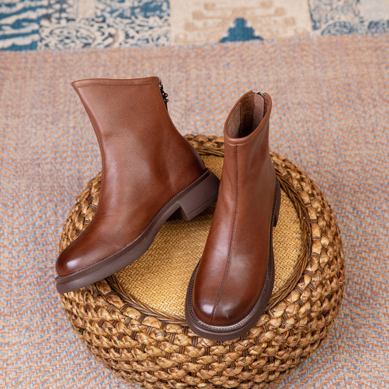 Women's Layer Cowhide Short Rear Zipper Martin Boots