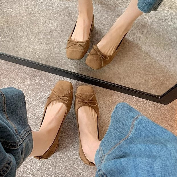 Women's Low-cut Bow Small Chunky Leopard Print Women's Shoes