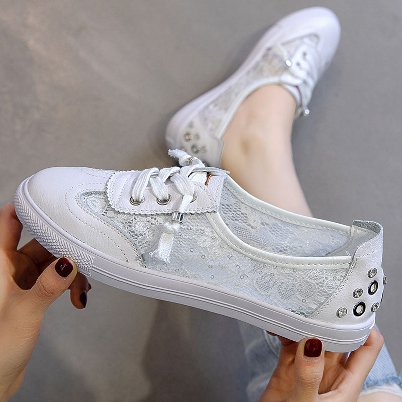 Women's Low-cut Lace Fisherman Mesh Surface White Casual Shoes