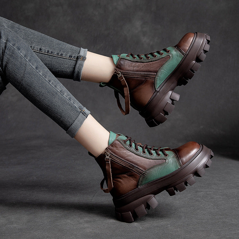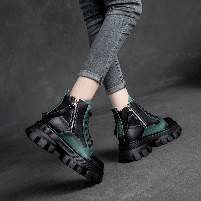 Women's Martin Double Zipper Round Toe Thick Bottom Fried Street Boots