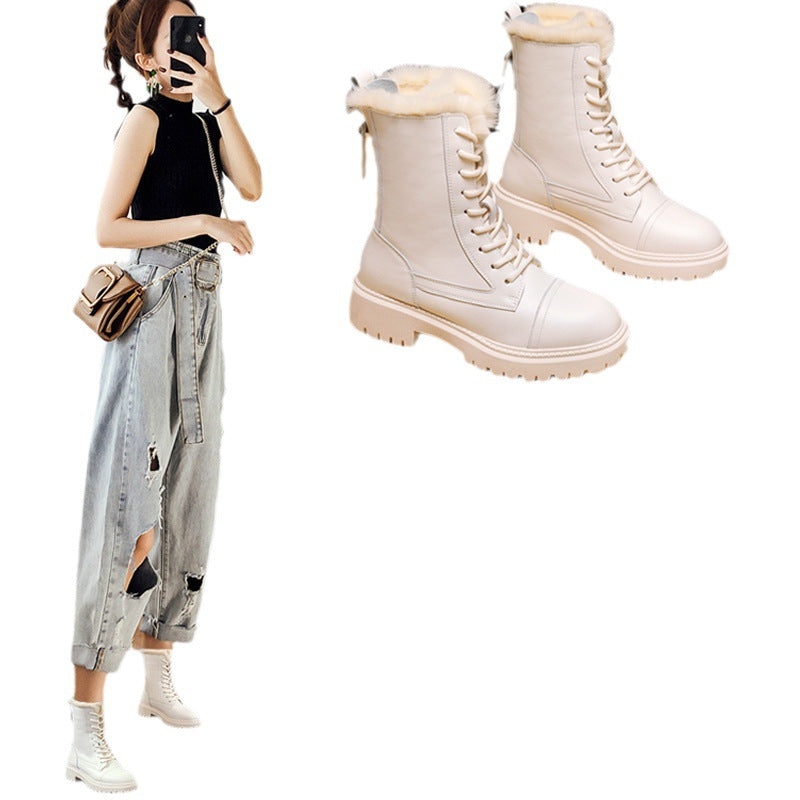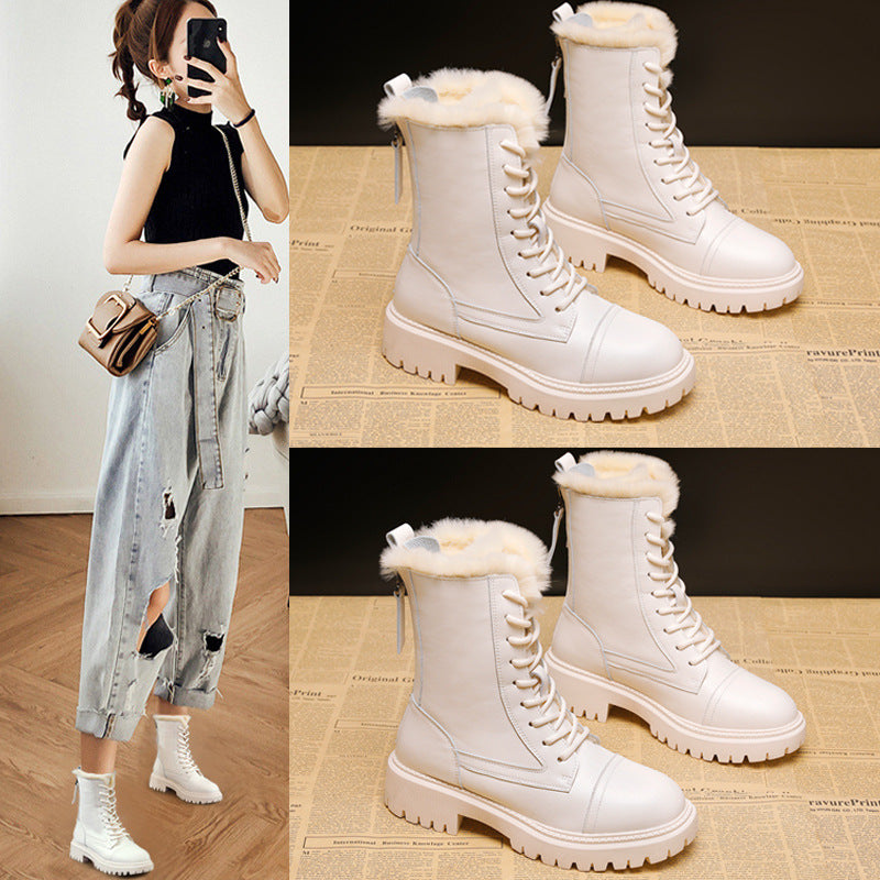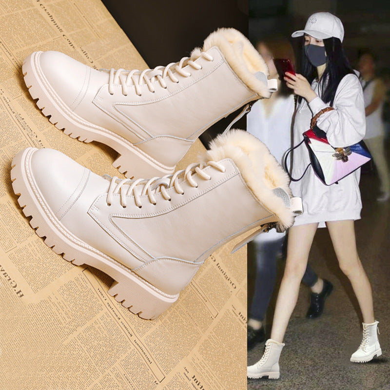 Women's Martin Real Fur Fleece-lined Thick-soled British Snow Boots