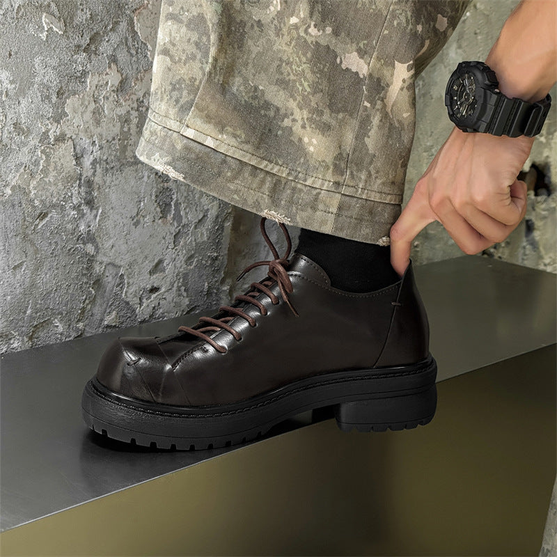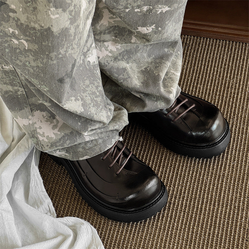Women's & Men's Fashion Small From Big Head Thick Bottom Leather Shoes