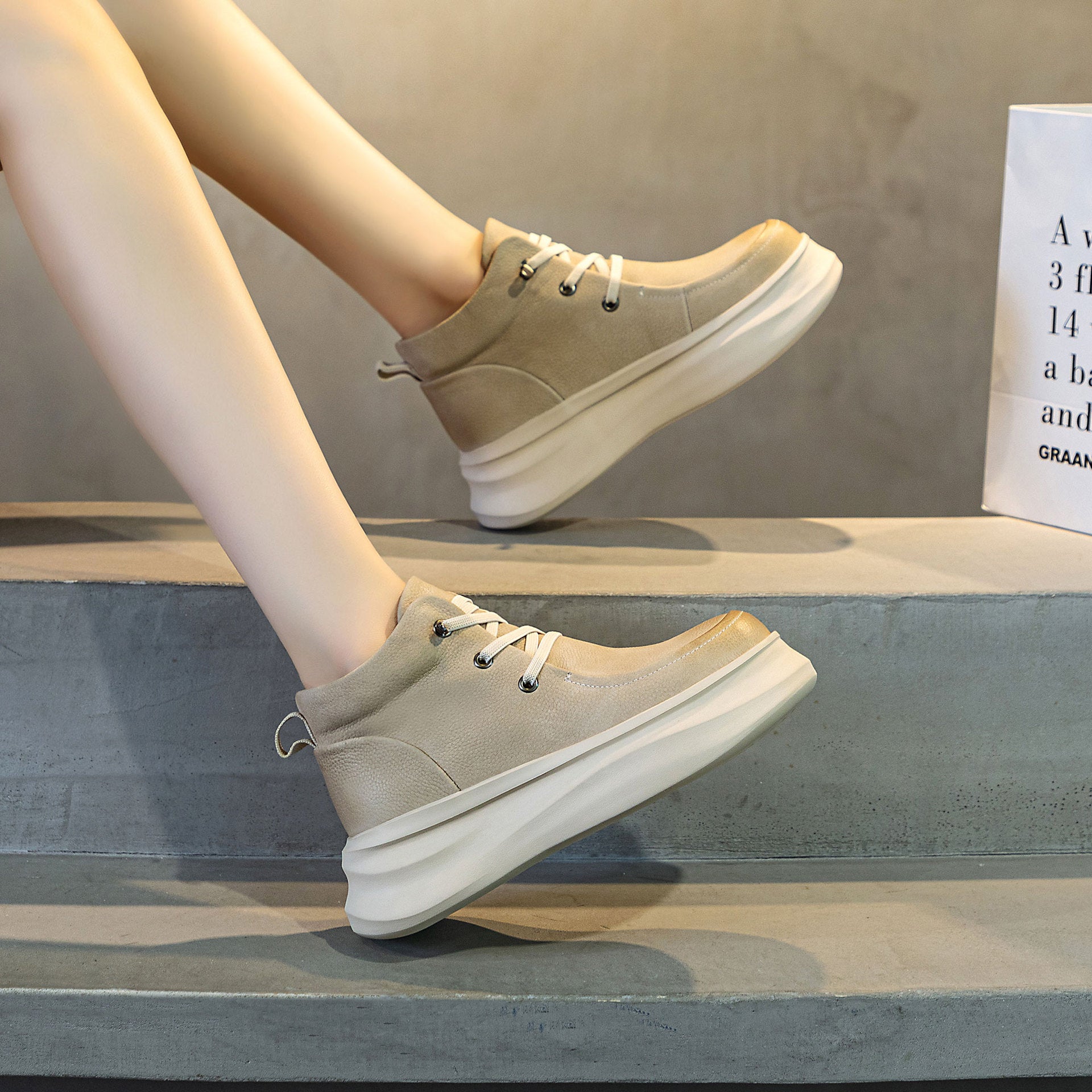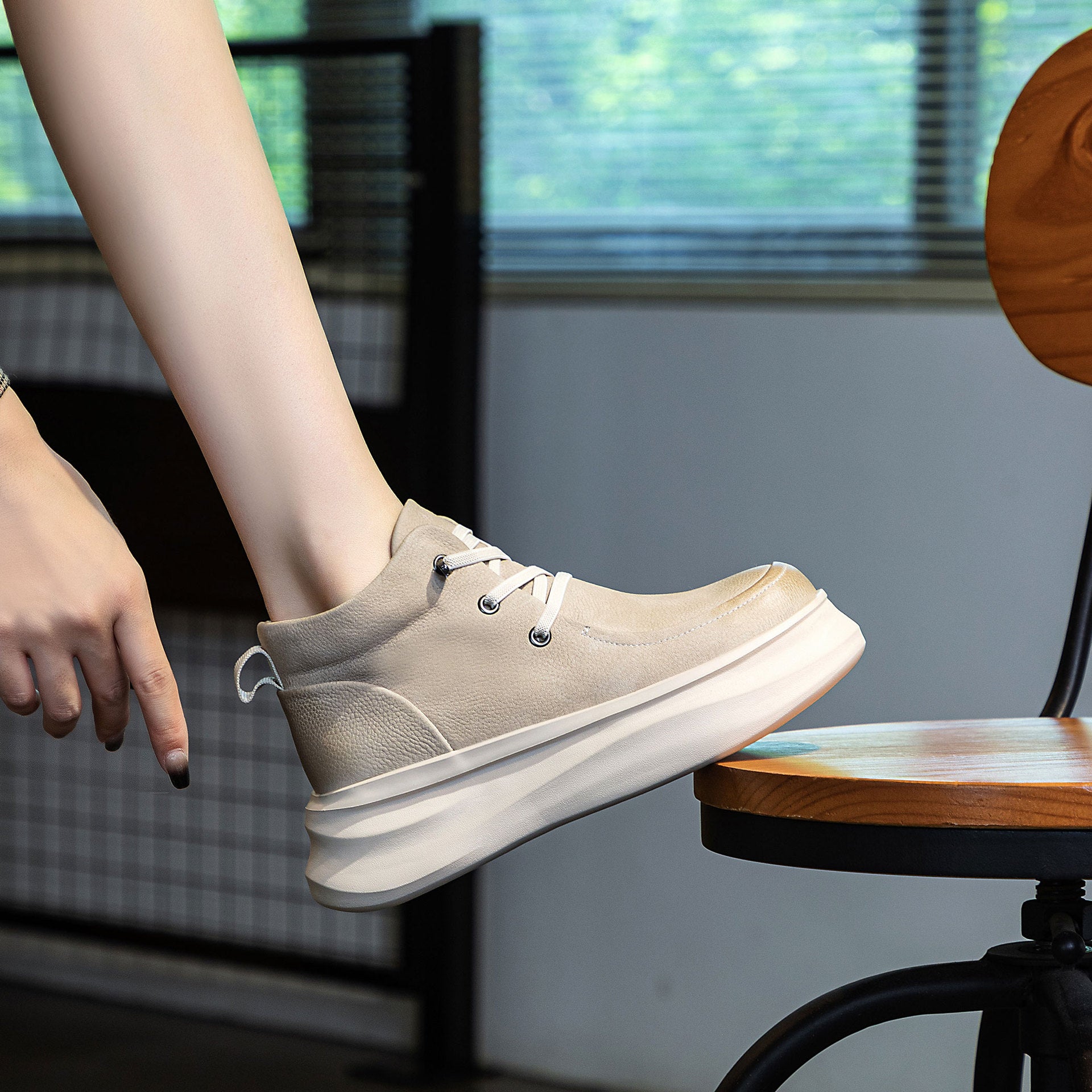 Women's & Men's First Layer Cowhide Thick Bottom Heightened Men's Shoes
