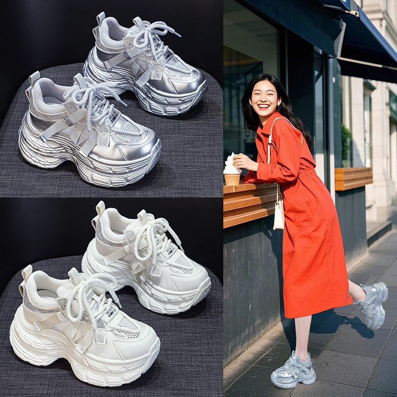 Women's & Men's Platform Height Increasing Insole Color Matching Rhinestone Men's Shoes