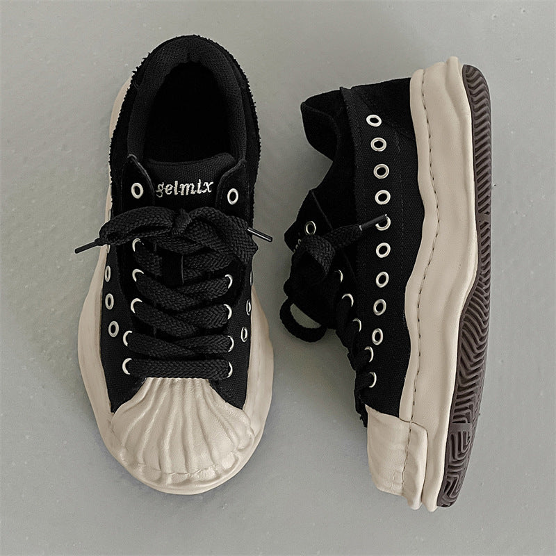 Women's & Men's Shell Toe Dissoed Couple Korean Style Platform Hight Sneakers