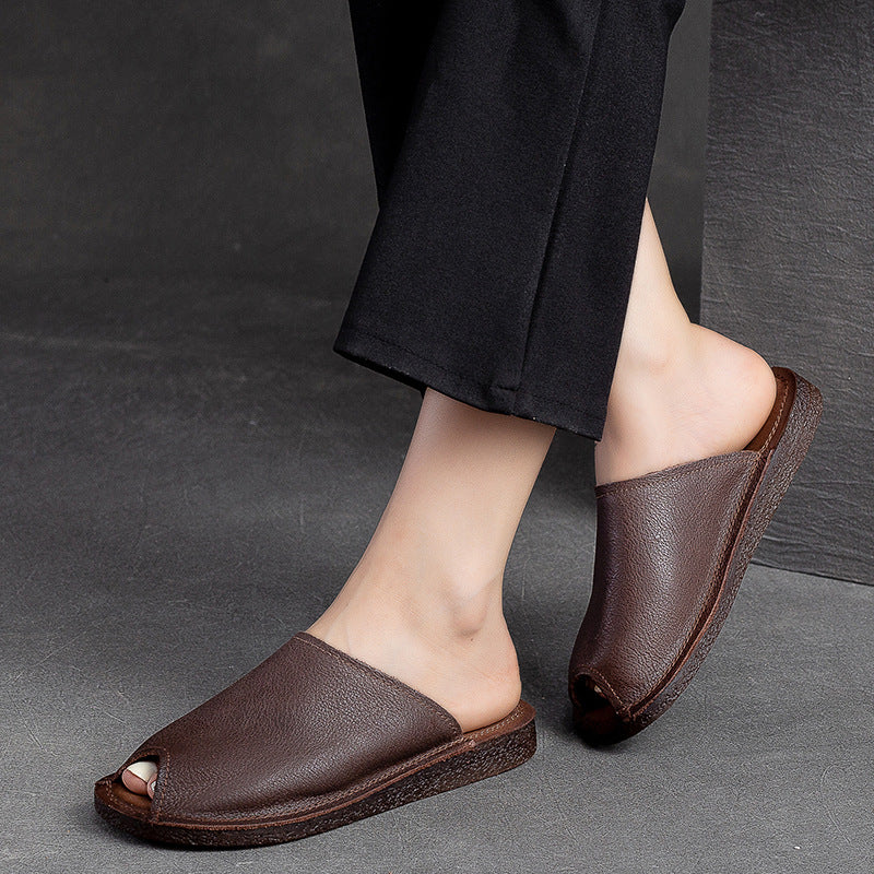 Women's & Men's Soft Bottom Top Layer Cowhide Retro Open Sandals
