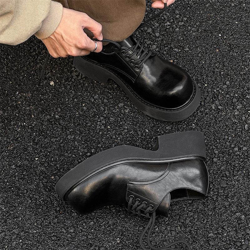 Women's & Men's Sole Increased Lovers British Big Head Leisure Leather Shoes