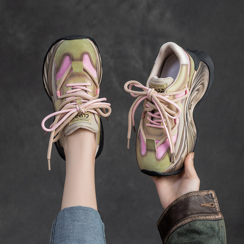 Women's Platform Daddy First Layer Cowhide Stylish Casual Shoes