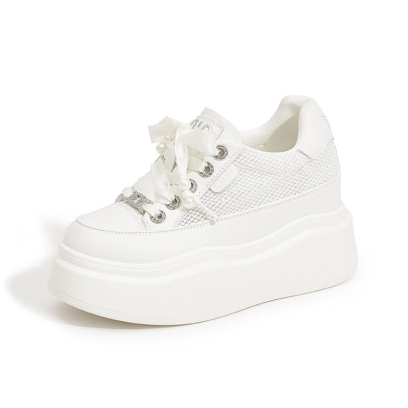 Women's Platform White Summer Height Increasing Insole Fashion Muffin Hollow Sneakers