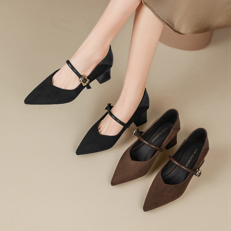Women's Pointed Toe Low-cut Western Style Mary Heels