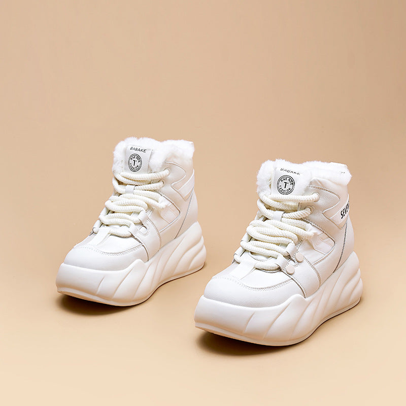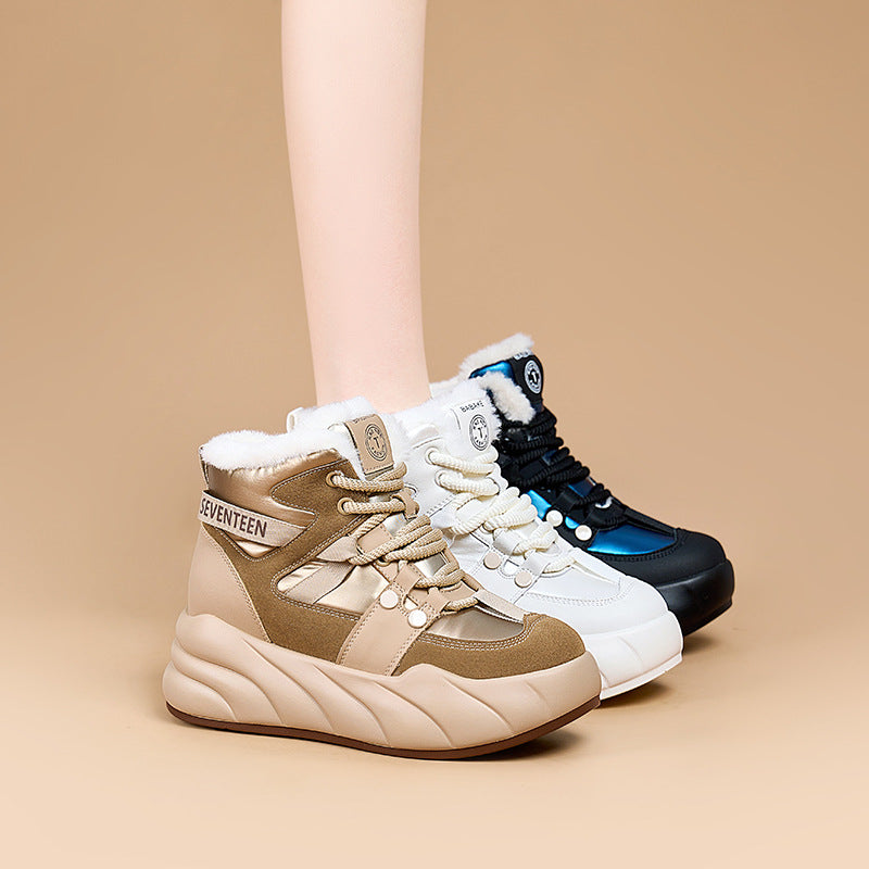 Women's Rabbit Fur Integrated Winter Fleece-lined Warm Snow Boots