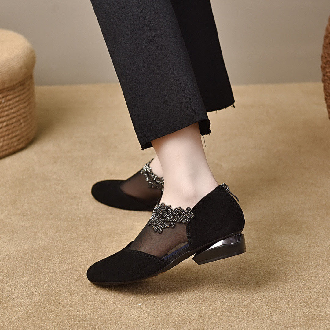 Women's Real Soft Mesh Low Breathable Closed Toe Rhinestone Sandals