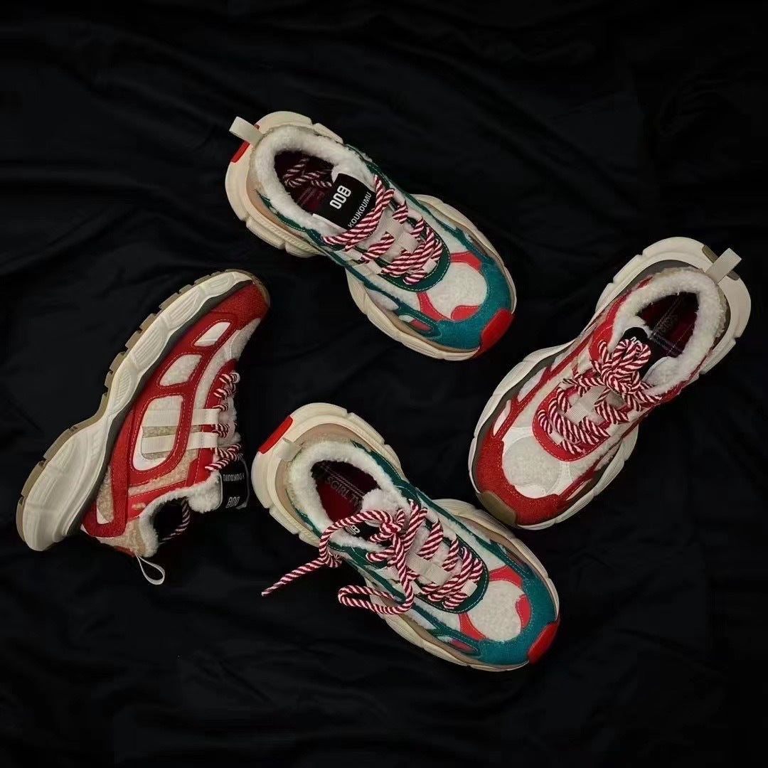 Women's Retro Contrast Color Lace Up Daddy Women's Shoes