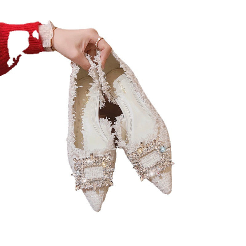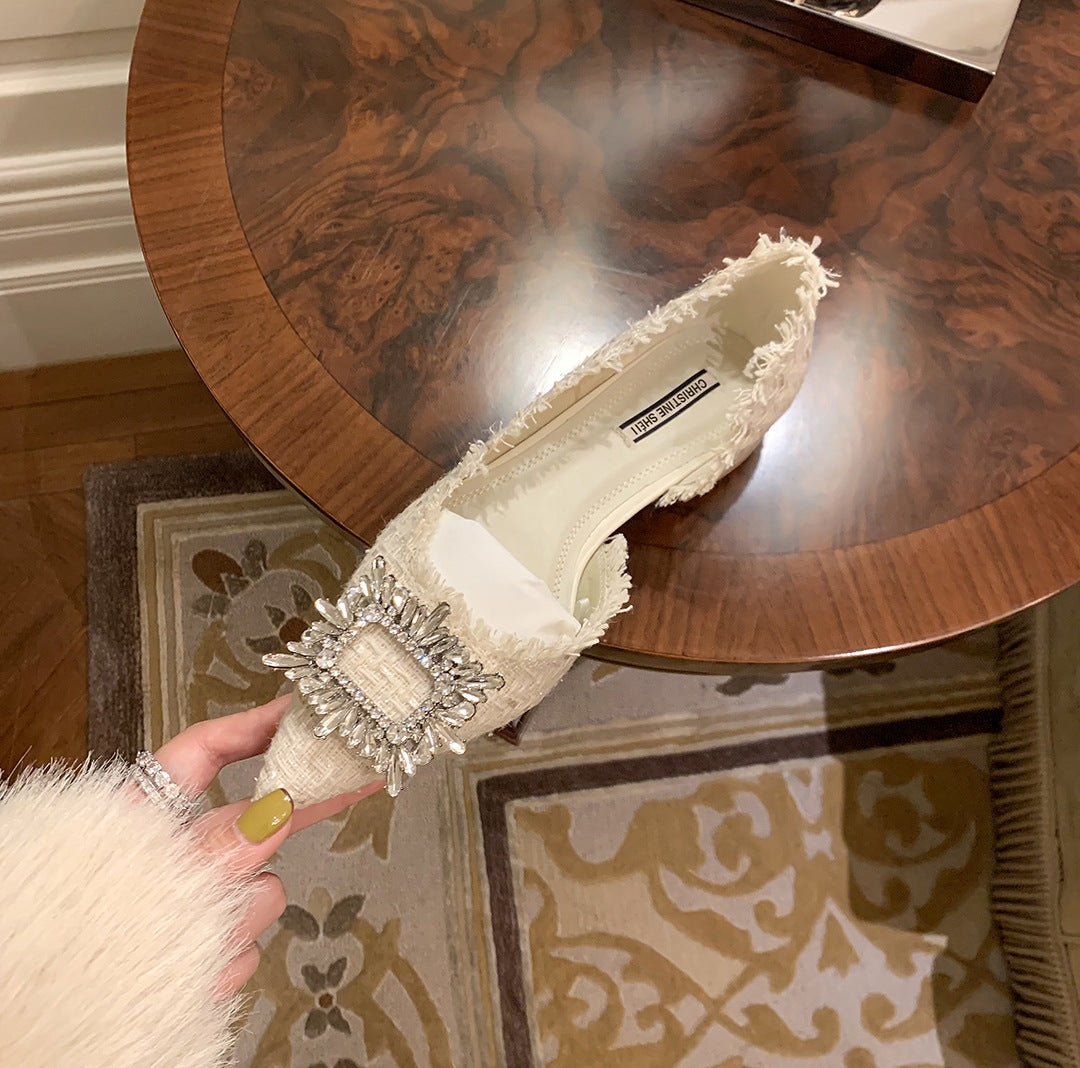 Women's Rhinestone Pointed Toe Square Buckle Chunky Low Casual Shoes