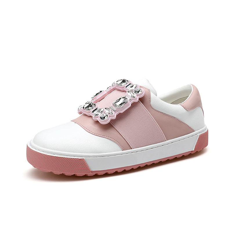 Women's Rhinestone Square Buckle Soft Flat Cloud Casual Shoes