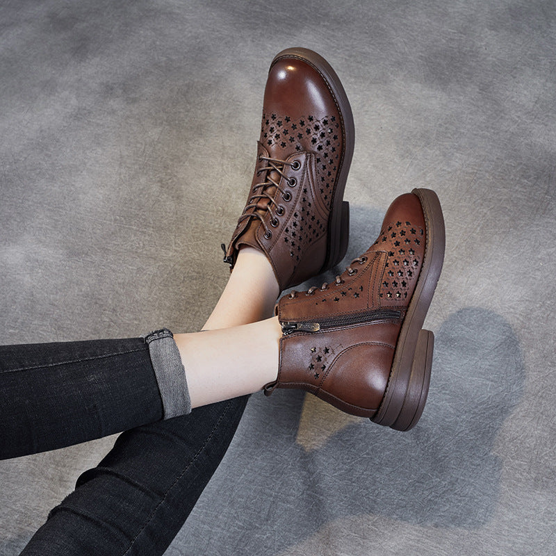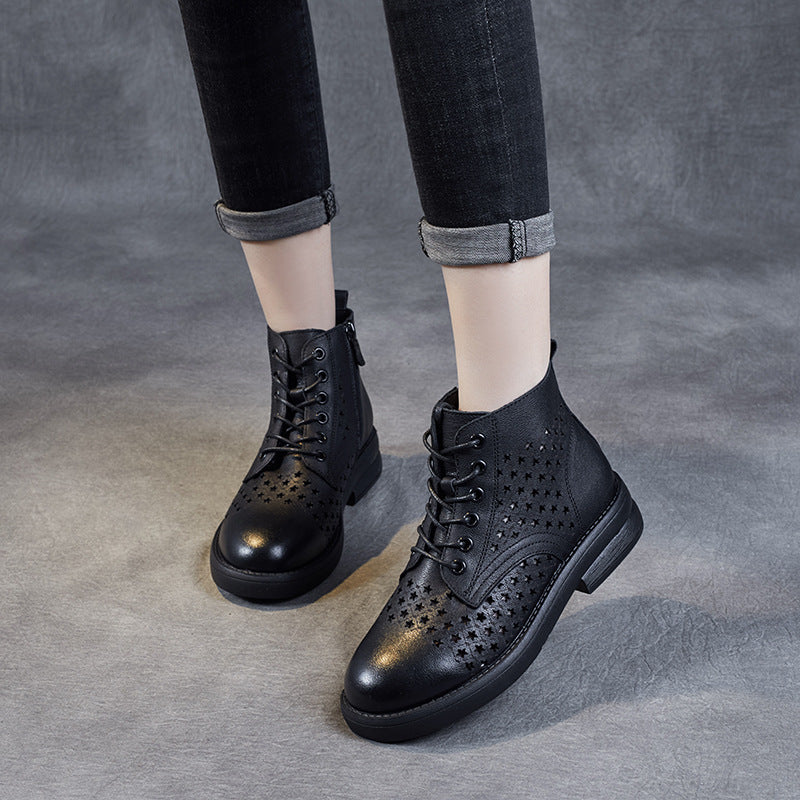 Women's Spring First Layer Cowhide Hollow Short Boots
