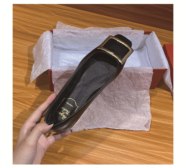Women's Square Buckle Toe Flats Patent Low-cut Women's Shoes