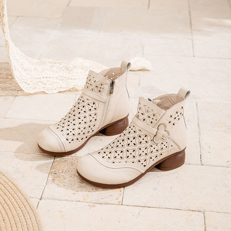 Women's Summer Booties Artistic Retro Chunky Hole Women's Shoes