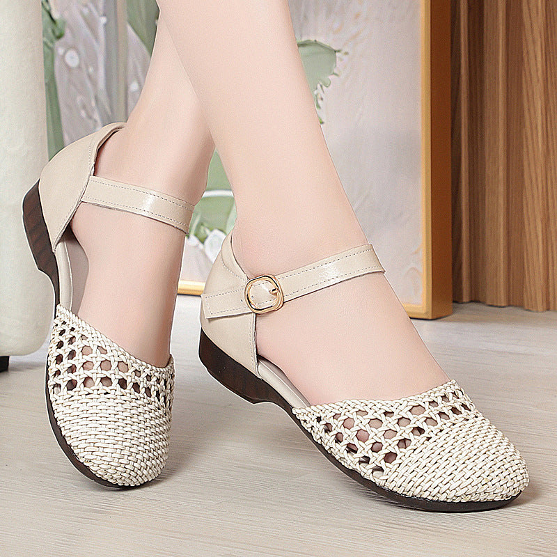 Women's Summer Mom Soft Soled Flats Woven Sandals