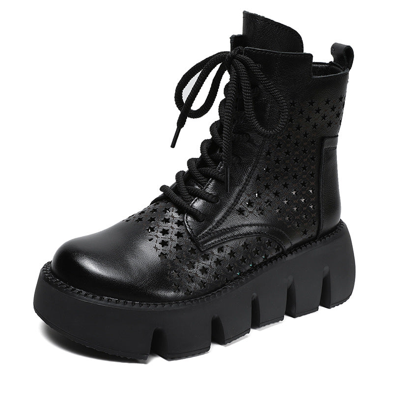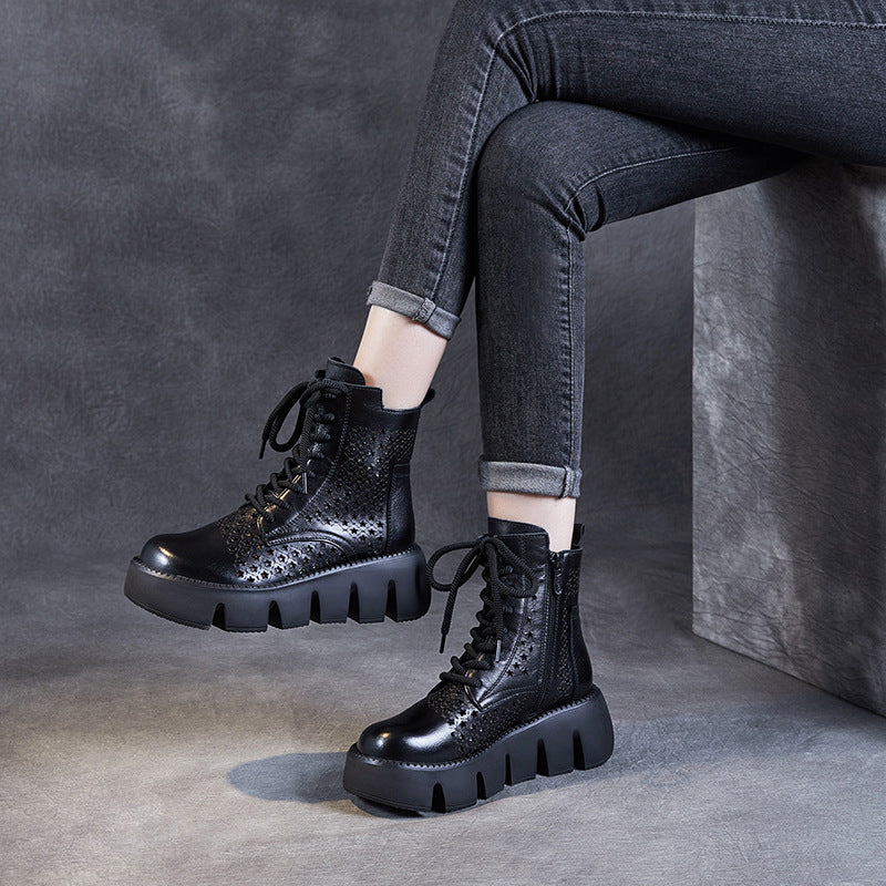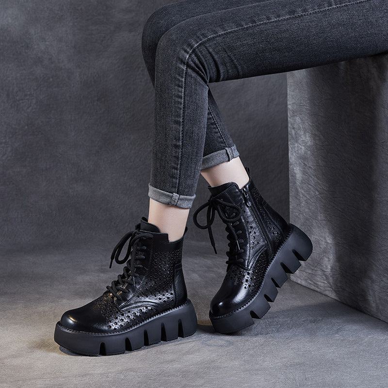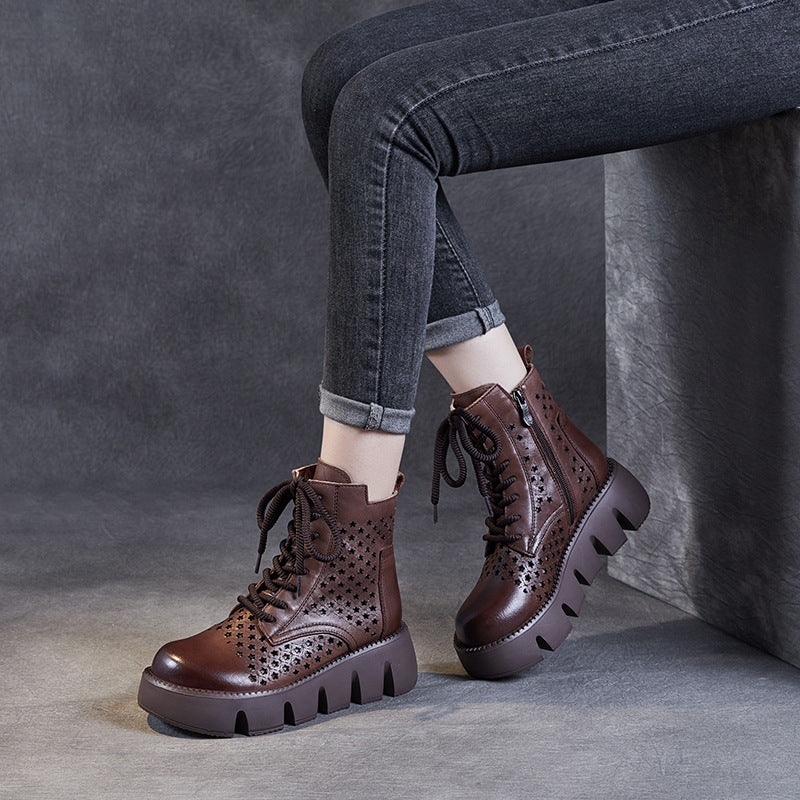 Women's Summer Retro Hole Zipper Platform Ethnic Sandals