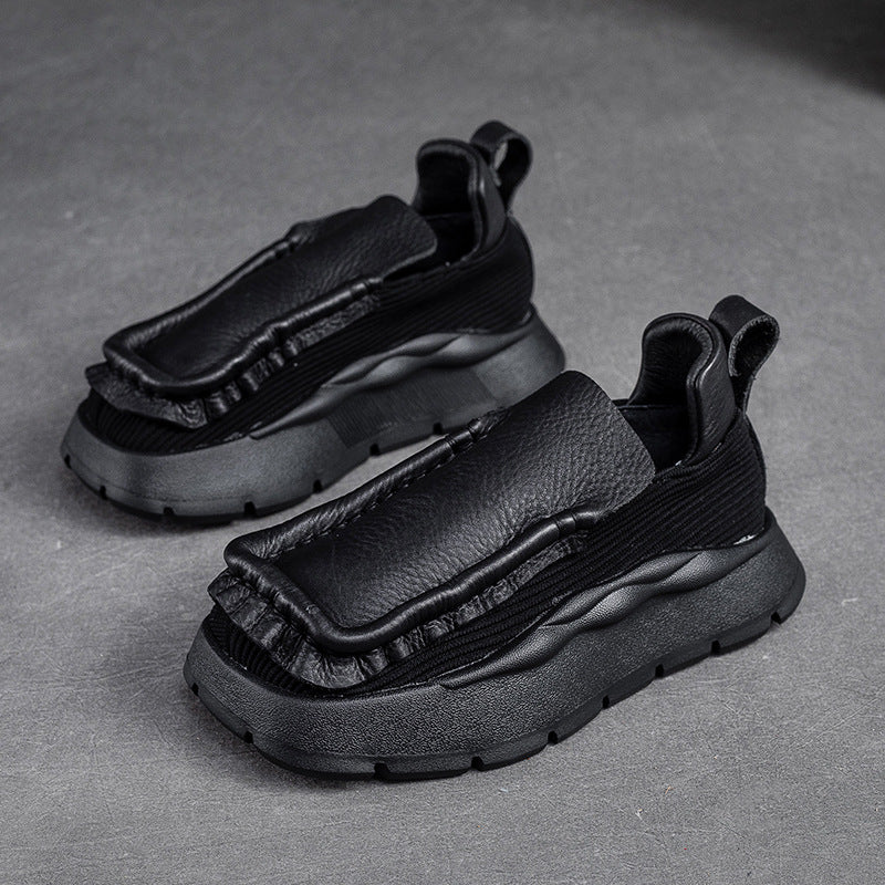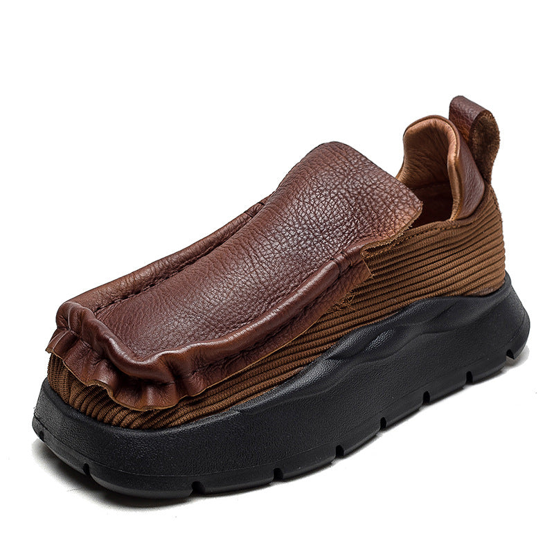 Women's Toe Vintage Pumps Thick Bottom Top Layer Cowhide Casual Shoes