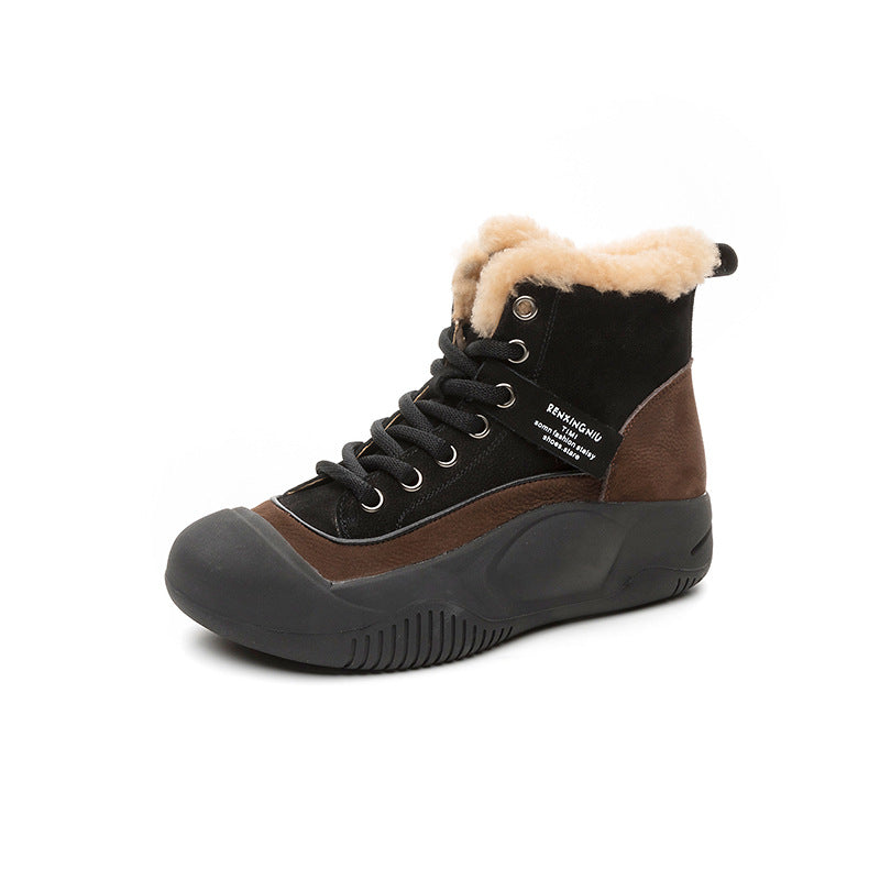 Women's Top Layer Cowhide Veet Cotton Short Closed Toe Snow Boots