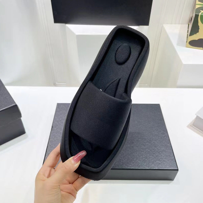 Women's Waterproof Height Increasing Square Head Cloth Slippers