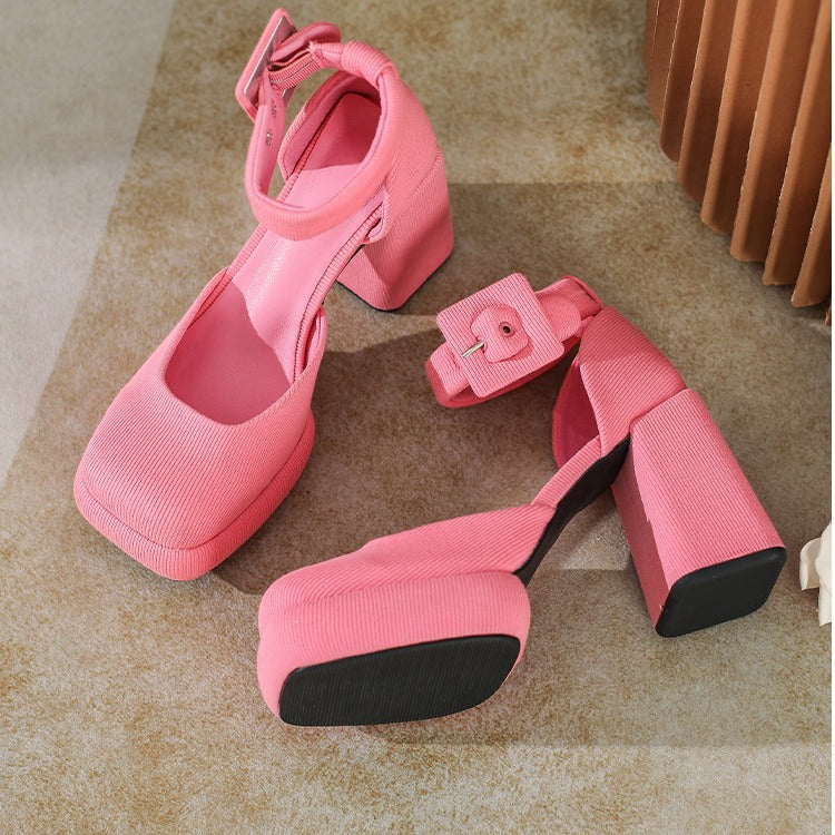 Women's Waterproof Platform Buckle Chunky High Black Women's Shoes