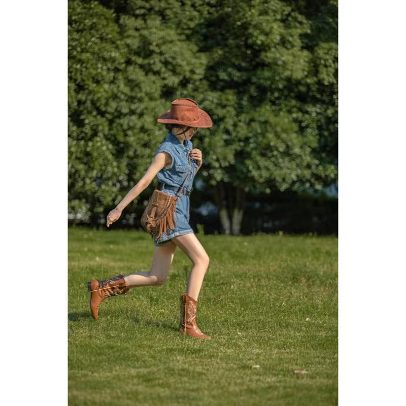 Women's Western Cowboy Summer Chunky Vintage Knight Boots