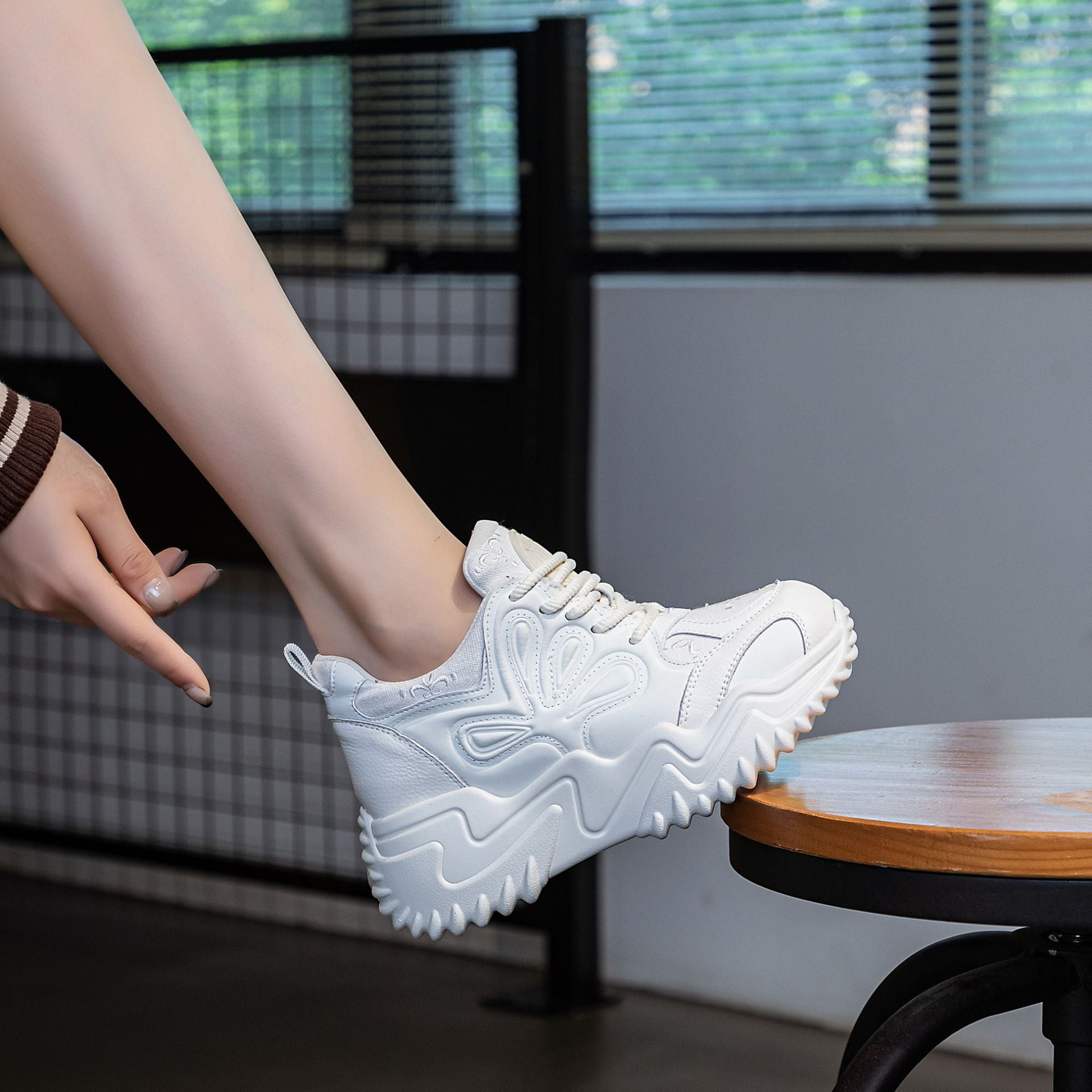 Women's White Autumn Thick-soled Fashionable Breathable Casual Shoes