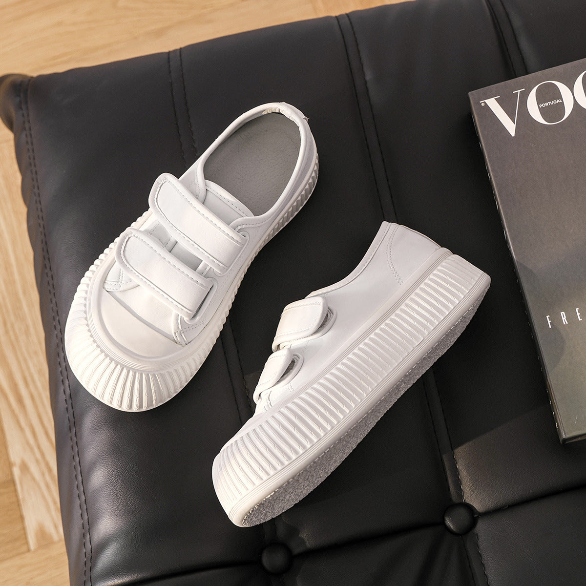 Women's White Genuine Elevator Velcro Cute Ugly Casual Shoes