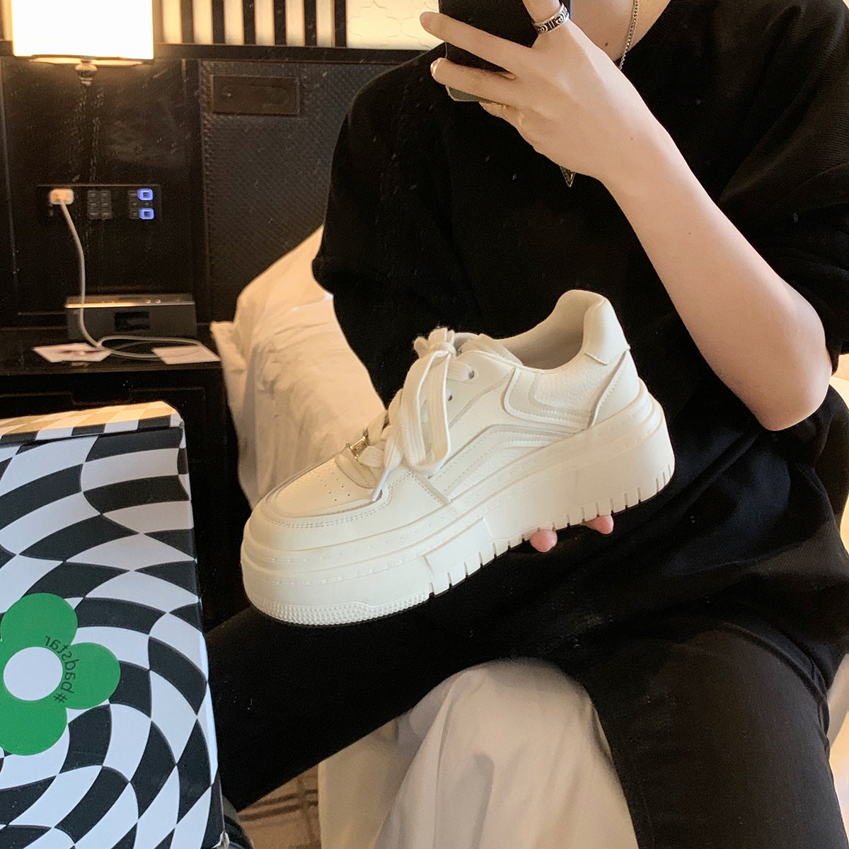 Women's White Round Toe Platform Elevator Wild Casual Shoes