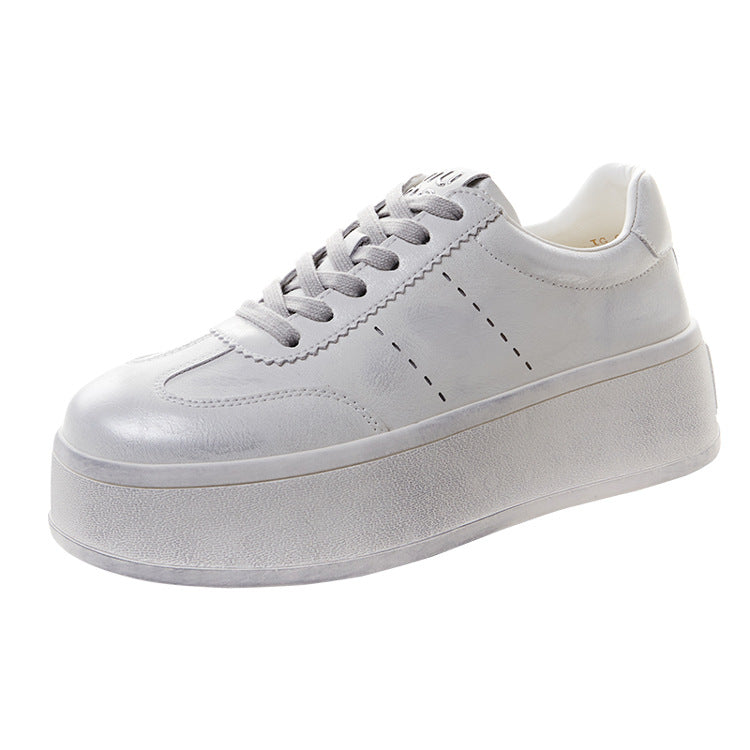 Women's White Spring Fashionable Flat Height Increasing Sneakers
