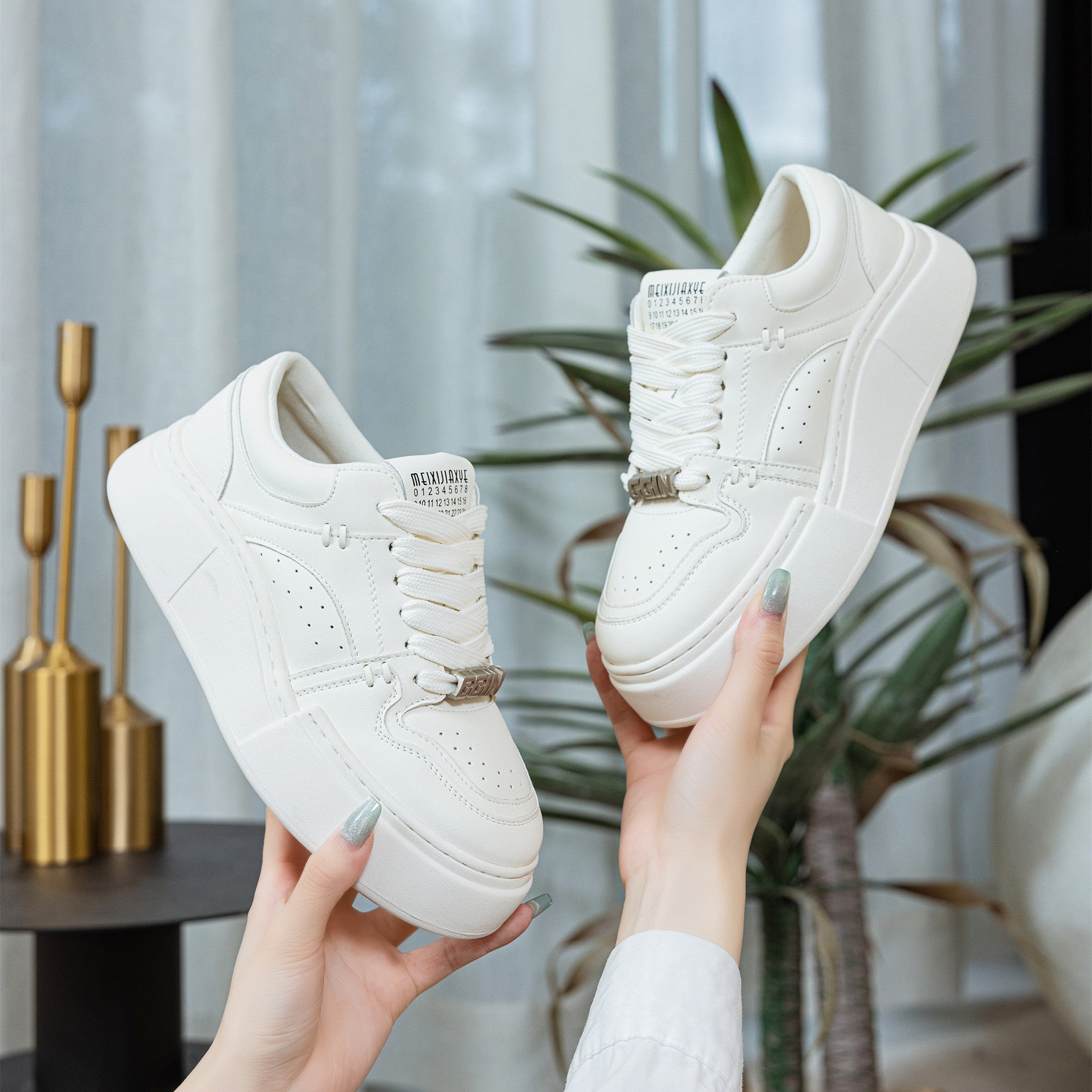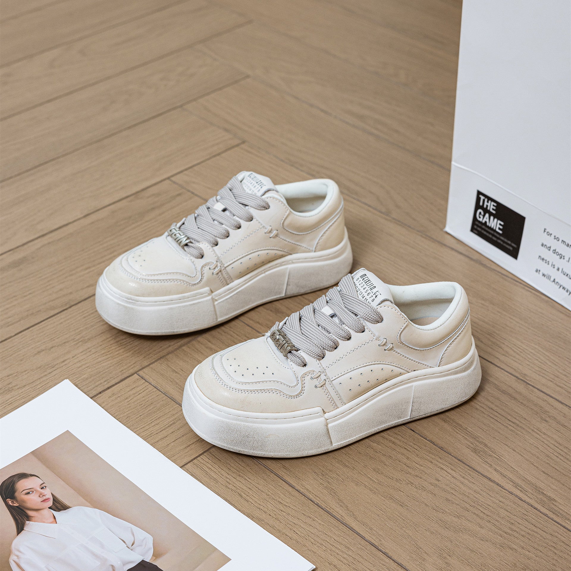 Women's White Thick Bottom Bread Design Sports Sneakers