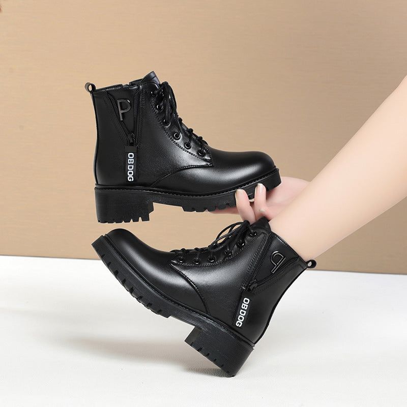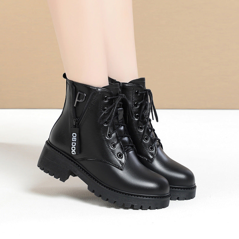 Women's Wool Big Cotton Flat Mid British Boots