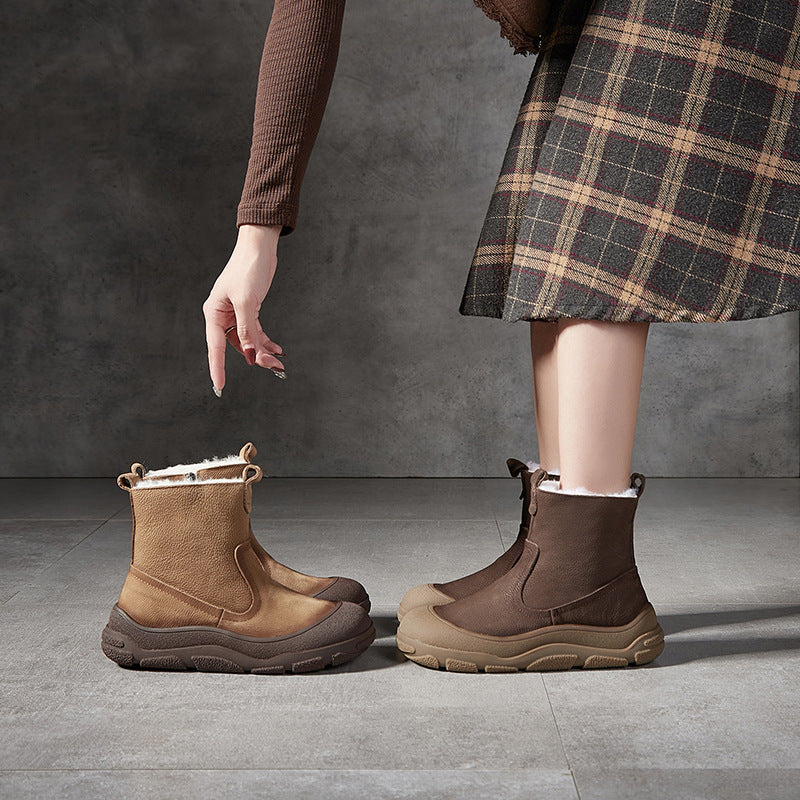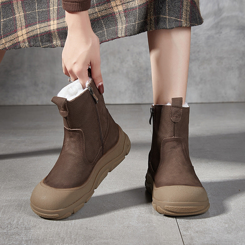 Women's Wool Round Head Thick Bottom High Side Zip Snow Boots